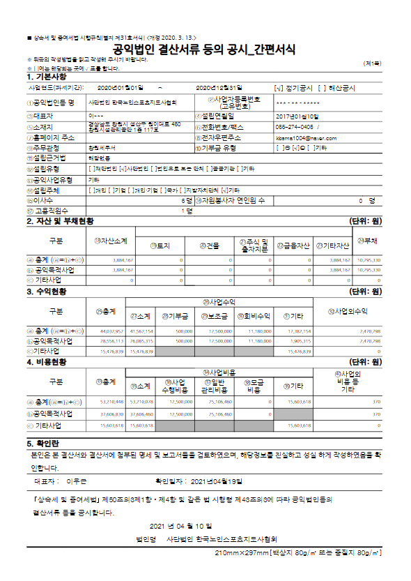 2020년 기부금 모금액 및 활용실적 명세서 페이지 정보 작성자 최고관리자 댓글 0건 조회 2,431회 작성일 21-09-28 23:38 본문 2020 기부금 모금액 및 활용실적 명세서를 공시합니다. 목록 이전글2021 기부금 모금액 및 활용실적 명세서 22.08.08 댓글목록 댓글목록 등록된 댓글이 없습니다.